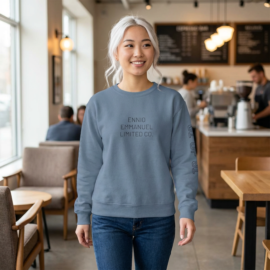 Crewneck Sweatshirt — 'Ennio Emmanuel Limited Co.' Front & Break Rules to Make New Ones Back